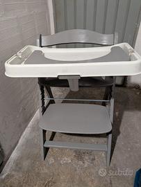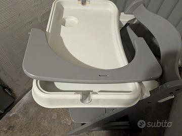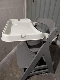 vendo seggiolone Hauck, sedia evolutiva comprensiva di vassoio in plastica e supporto in legno anti caduta. usato, presenta una rottura sul retro ma non ne compromette il funzionamento