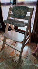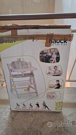 Hauck seggiolone (for life) evolutivo pappa con Ruote, Vassoio prima pappa, vassoio protettivo, cuscino di seduta a 2 pezzi, Cintura a 5 Punti e Cinturina Inguinale, per Bambini 6 Mesi fino a 90 kg Legno di Faggio. imballo originale
