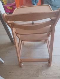 Seggiolone in legno due in uno utilizzabile già da neonato.con scatola