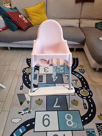 vendo seggiolone Ikea Antilop rosa comprensivo di poggiapiedi. Il seggiolone è in buone condizioni ma non ha più le sue cinture di sicurezza originali.