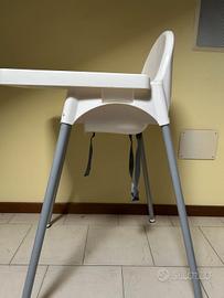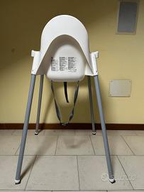 Seggiolone in plastica per bimbo/a marca Ikea. È il classico che si può trovare anche in tutti i ristoranti.