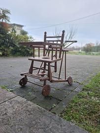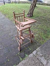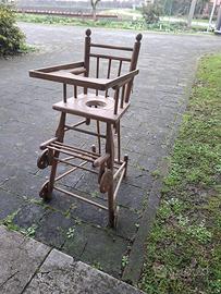 Vendo seggiolone in legno antico, originale, con fascino vintage.