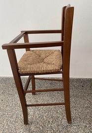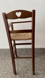 Seggiolone in legno con seduta in paglia per bimbi, pari al nuovo