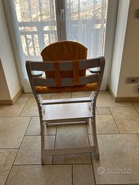 Seggiolone in legno bianco, tenuto bene, che può diventare una sedia.. per le prime pappe fino a 7/8 anni…