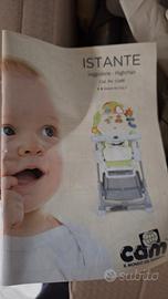Da sdraietta a comoda seduta per la pappa, il Seggiolone Istante di Cam è utilizzabile sin dalla nascita, grazie allo schienale regolabile in 8 altezze e 4 inclinazioni, per passare in un attimo dal gioco al pranzo o alla nanna.