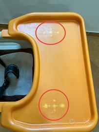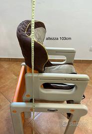 seggiolone reclinabile arancione marrone beige con difetti come in foto, si trasforma in tavolino (ho altre foto chiedete in privato)