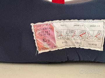 Seggiolone auto Joyello 9-36kg fino a 150cm di altezza colore grigio/blu, lo schienale si puo smontare e usare solo la seduta come alzatina fino al raggiungimento dei 150 cm di altezza.