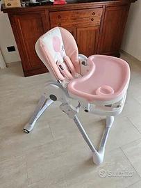 Modello YUMMY, seggiolone Kinderkraft molto versatile. Colore rosa pois, adatto dai 6 ai 36 mesi fino a 15 kg. 7 altezze regolabili per adattarsi a tutti i tavoli. Schienale reclinabile in 3 posizioni. Vassoio doppio rimovibile e lavabile. Poggiapiedi regolabile per una postura corretta. Imbracatura a 5 punti per la massima sicurezza. Chiusura pieghevole compatta con ruote posteriori. Condizioni eccellenti: usato poco, pulito e igienizzato. Vassoio senza graffi, tessuto rosa pois in ottimo stato. Meccanismi fluidi, tutte le regolazioni funzionano, struttura stabile e robusta. Completo di seggiolone, vassoio doppio, imbracatura a 5 punti e coprivassoio removibile. Ritiro zona Montespaccato (Roma).