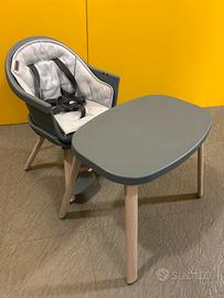 Seggiolone pappa evolutivo (6 mesi-5 anni, 0-22 Kg). Seggiolone regolabile, si trasforma in alza sedia, sgabello e tavolino con sedia. Facile da pulire, da installare e da trasformare. Colore grigio grafite. Dimensioni: H 85,5 cm P 58 cm L 60,5 cm. In ottime condizioni.