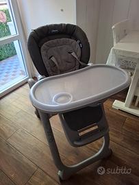 Comodissimo seggiolone della chicco polly magic relax . Dotato di schienale reclinabile in più posizioni, la seduta si alza e si abbassa in base alle necessità ed in più è richiudibile.