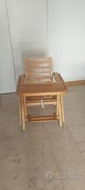 Seggiolone interamente in legno Foppa Pedretti. Due altezze, basso e altezza tavolo. Ben conservato