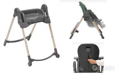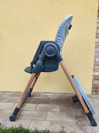 Seggiolone regolabile con cinque posizioni reclinate e nove livelli di altezza, puoi usare Minla dalla nascita, prima con seduta reclinata e comodo riduttore e poi, con il passare dei mesi e degli anni, puoi usarlo come seggiolone, alzasedia e infine come sgabello.