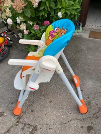 Seggiolone chicco modello Polly . Usato ma in ottime condizioni . La copertura nella parte sottostante ha uno strappo ma si puo sostituire .