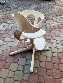 bambino a mangiare a tavola con la famiglia senza essere isolato. La struttura è fatta un modo da crescere cin il bambino fino ad invertire i piani ed usarla come sedua per scrittoio. Leggero e versatile, comprensivo di copertura sediolino color grigio chiaro( in foto non c’è perchè in fase di lavaggio antibatterico).