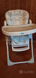 Seggiolone Pali in ottime condizioni modello Pappy Light, caratterizzato da un design compatto e regolabile. Altezza regolabile in 6 posizioni e schienale reclinabile in 3 posizioni. Dotato di cinture di sicurezza a 5 punti e spartigambe removibile. Include un doppio vassoio estraibile regolabile in 3 posizioni. Ruote anteriori a scomparsa per facilitare lo spostamento e chiusura ultracompatta.