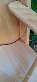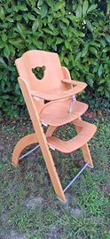 seggiolone in legno Pali, sono compresi anche i cuscini copri seduta e copri schienale. Danneggiato alle estremità della seduta ma rimane sotto il cuscino, perfettamente utilizzabile, vedi foto. È possibile modificare le altezze della seduta e del poggia piedi.