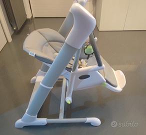 Pappy Rock è il Seggiolone Pali multifunzione, utilizzabile dalla nascita e fino a 36 mesi, con funzione sdraietta, dondolo e seggiolone pappa. Il bebè può utilizzare nei primi mesi il Seggiolone Pali Pappy Rock come sdraietta, grazie allo schienale e al poggiapiedi completamente reclinabile e regolabile. Nello stesso periodo può usare Pappy Rock come un dondolo. La funzione dondolo è automatica, grazie alle batterie incluse, Pappy Rock di Pali culla il bambino in base alla velocità scelta. Il seggiolone è datato di un arco giochi con due peluche, per intrattenere il bambino durante il momento della pappa.