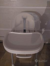 il seggiolone è reclinabile e movibile in varie altezze e posizioni.