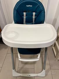 Seggiolone per bambini con cinture di sicurezza by peg perego da 0 mesi fino a 3 anni (0-15 kg), con schienale reclinabile e pedanetta poggiapiedi regolabile, chiusura pratica e ultracompatta che permette al seggiolone di stare in piedi da solo, rivestimento in ecopelle morbido e igienico, si pulisce con un panno umido, doppio vassoio rimovibile con porta bicchiere. Usato ma ancora in buonissime condizioni.