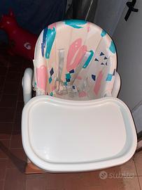 Vendo seggiolone pappa usato ma tenuto maniacalmente. Il seggiolone si regola in diverse altezze. Bavaglino in silicone e riduttore invernale compreso nel prezzo.