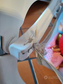 Utilizzabile già da subito in quanto reclinabile. Regolabile in altezza, completo di tutto, cinture di sicurezza incluse. Segni d'usura normali come da foto. tessuti già lavati e igienizzati. Imbottitura ancora utilizzabile, qualche crepa attorno ai bottoni per l'aggancio. Retino per contenere i giochi ancora utilizzabile, unico difetto un piccolo strappo rimediabile come abbiamo fatto noi. Acquistato a prezzo pieno, 3 anni fa euro 200,00. Ritiro a carico dell'acquirente. Prezzo leggermente trattabile.