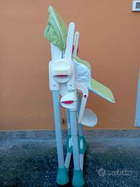 Seggiolone pappe, reclinabile in 3 posizioni e richiudibile. Comprensivo di riduttore e cinturine. Imbottitura sostituita nuova !
