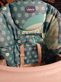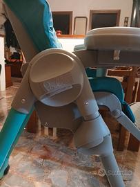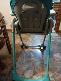 Seggiolone pappa Chicco Polly con schienale reclinabile verde acqua, imbottito, vassoio estraibile. Richiudibile con ruotine. Tenuto perfettamente.