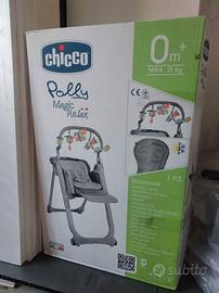 SEGGIOLONE RECLINABILE: Polly Magic Relax è il seggiolone Chicco ottimale dalla nascita ai 3 anni, con schienale reclinabile in 4 posizioni, comodo poggiagambe, barra gioco e cuscino riduttore