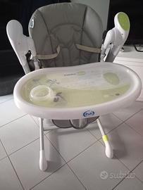 Il seggiolone è in ottime condizioni perfettamente funzionante! regolabile in varie altezza ,si può usare anche come dondolo alimentato da un cavetto della corrente.Presenta solo un segno di usura del tessuto sulla seduta come si vede dalle foto!
