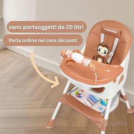 2-in-1 Seggiolone e Sedia – Funzione trasformabile che permette di utilizzarlo come seggiolone pappa per bambini e sedia per la tavola.