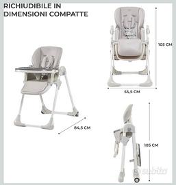 Kinderkraft Seggiolone Pappa, Regolabile, Pieghevole, Ripiano Smontabile, per Bambini da 6 Mesi fino a 3 Anni, Grigio. Ritiro a carico dell’acquirente.