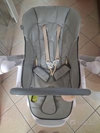 Elettrico. Alimentazione a batterie o con cavo (purtroppo non incluso). L'alimentazione serve ad attivare il sistema elettrico della sdraiata a dondolo ed i suoni di nimali, natura ecc incorporati. Si può introdurre anche USB con suoni integrativi. La sdraietta ha un sistema dondolo anche manuale. Con giostrina incorporata. Una volta diventato seggiolone ha il piano pappa incorporato che si può staccare per farlo diventare poi sedia da tavolo.