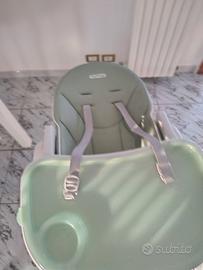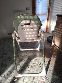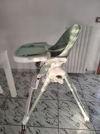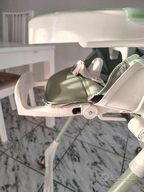 Seggiolone pappa Peg Perego linea "Prima Pappa follow me", usato pochissime ed in perfette condizioni, come nuovo. Schienale reclinabile e poggiapiedi regolabile, altezza del seggiolone regolabile e vassoio rimovibile. Rivestimento in eco pelle imbottito. Colore bianco e verde salvia