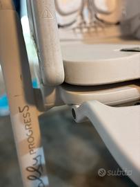 Vendo seggiolone polly progress, il seggiolone che cresce insieme al bambino, e si adatta quando diventa grande alla sedia. Purtroppo la fodela del seggiolone si e completamente rovinata di conseguenza l'abbiamo buttata, pero lo scheletro del seggiolone e le componenti come paracolpi sono ancora disponibili.