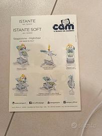 Seggiolone pappa Cam usato poco quindi in ottime condizioni e completo di tutti gli accessori ( lavati e chiusi in busta) Si utilizza da 0-9 kg circa con funzione “sdraietta" / 0-15 kg circa con funzione seggiolone 8 altezze, 4 inclinazioni dello schienale Poggiapiedi regolabile in 3 posizioni d’altezza e lunghezza 2 tavolette regolabili e removibili Vani portaposate Rivestimento in pvc Cinghia a 5 punti Barra gioco con sonaglietto, carta sonora e gioco sospeso con elastico, con 2 posizioni di fissaggio (ai braccioli e alle maniglie laterali) Ruote posteriori Capiente cestino Si pulisce facilmente con una spugnetta Rivestimento in tessuto lavabile a 30°C Chiusura compatta con cavalletto di sostegno Si utilizza facilmente con una sola mano