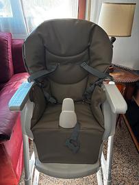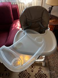 Il seggiolone Pappananna si può utilizzare con funzione “sdraietta” o funzione seggiolone. Il seggiolone Pappananna è dotato di ampia tavoletta regolabile e removibile, cinghia, morbida imbottitura di color beige (in un punto visibile in foto si è “mollata” ma non ne inficia il funzionamento) e ruote posteriori. Tenuto bene.