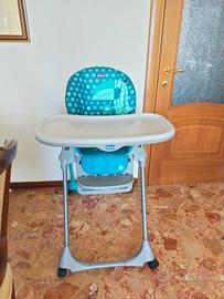 Seggiolone pappe chicco usato in buone condizioni bambino 6 mesi 3 anni regolabile a sdraietta, e poggia piedi 4 ruote