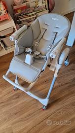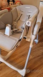 Bellissimo seggiolone Peg Perego Follow me comprensivo di imbottitura e giochini da utilizzare come sdraietta. Si trasforma in seggiolone pappa. Tutto sfoderabile e lavabile.