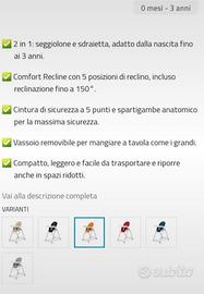 Vendo Seggiolone peg perego follow me come nuovo, igienizzato. Pratico perché regolabile in altezza e completamente reclinabile, perfetto per la pappa ma anche per riposino.