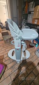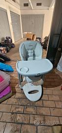 seggiolone tata mia, regolabile in altezza, reclinabile e trasformabile in dondolo. copertura leggermente consumata, risolvibile con copertura in tessuto che ho disponibile. trattabile
