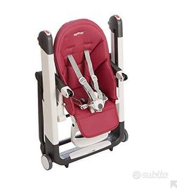 Seggiolone peg perego siesta follow me, color ciliegia cone foto, altezza regolabile, reclinabile a sdraietta , doppio vassoio con portabicchiere, rivestimento ecopelle facilmente lavabile
