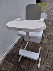 Seggiolone marca Brevi in metallo e plastica. Altezza variabile, ottimo sia per tavole che per altezza banconi da cucina.