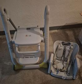Seggiolone evolutivo con 5 diverse modalità di utilizzo dalla nascita fino ai 36 mesi. Sdraietta 0m+ ,seggiolone 6m+ ,prima sedia 6m+, rialzo sedia 6m+,sgabello 36m+. Altezza regolabile su 8 livelli ,facilmente richiudibile. Comodo da trasportare grazie alle ruote.Fodera della seduta da acquistare a parte.