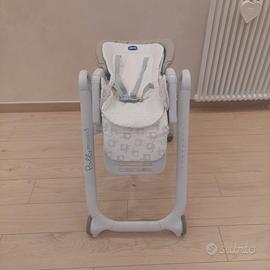 Seggiolone utilizzabile fin dai primi mesi, dotato di kit giostrina e riduttore, diverse inclinazioni dello schienale, regolazione del telaio in varie altezze. Il seggiolino si può staccare e legare con cinghie alla sedia per portarlo fuori casa. Zona Morena Roma no spedizioni