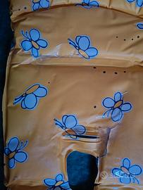 Copri seggiolone Orsetti plastificato e imbotto non è perfetto (ultima foto) ma acquistabile anche online se si vuole cambiare. Cinturino di sicurezza con qualche macchietta.