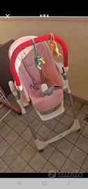 - Seggiolone con pedana e pedanetta poggiapiedi regolabili, adatto per neonati grazie all'accogliente seduta.