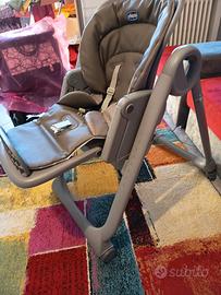 ottime condizioni, puoi scegliere l'altezza della seduta a seconda del tavolo, pianale con 4 allontanamenti, si può rimuovere, nel tempo diventa una seggiolina, si può reclinare a sdraio si può appendere la barra con i giochini in dotazione. all'interno fodera invernale ed estiva. regalo due grembiuli per il pranzo e set prime posate in silicone.