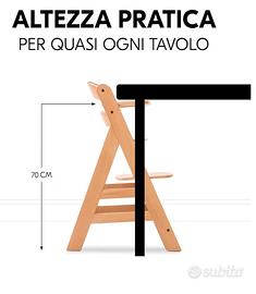 La seduta seggiolone hauck e il poggiapiedi sono regolabili in modo da crescere con il tuo bambino. Il seggiolone neonato è adatto dai 6 mesi con una capacità massima fino a 90k Il seggiolone è realizzato in legno di faggio proveniente da foreste cert. FSC in modo da proteggere le foreste stesse Versatile: con un'altezza della barra di 70 cm, il seggiolone evolutivo hauck si adatta a quasi tutti i tavoli - ideale per mangiare e giocare insieme Il prezzo nuovo è di 110€