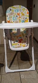 Seggiolone con schienale regolabile in 3 posizioni, altezza seduta regolabile in 6 posizioni.