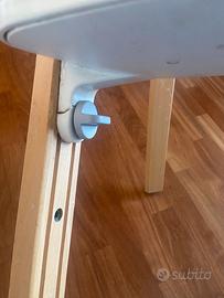 Sedia Stokke completa di tutte le parti adatta dai 5 mesi in su. Unica parte danneggiata segnalata in foto ma non compromettenla tenuta della pedana…perfettamente stabile e funzionante.